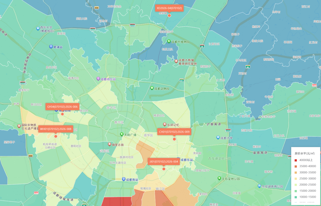 武侯区地块,编号WH01(070102):2026-008,位于武侯区金花桥街说念花龙门社区,用地性质为住宅用地,地皮出让面积14805.00㎡(合22.2075亩),经兴修筑面积22207.00㎡,容积率1.5,肇端楼面价13900元/㎡,折合,肇端价3.09亿元。最终新但愿&武侯国投以楼面价13900元/㎡竞得该地块,成交总价3.09亿元,溢价率0%。